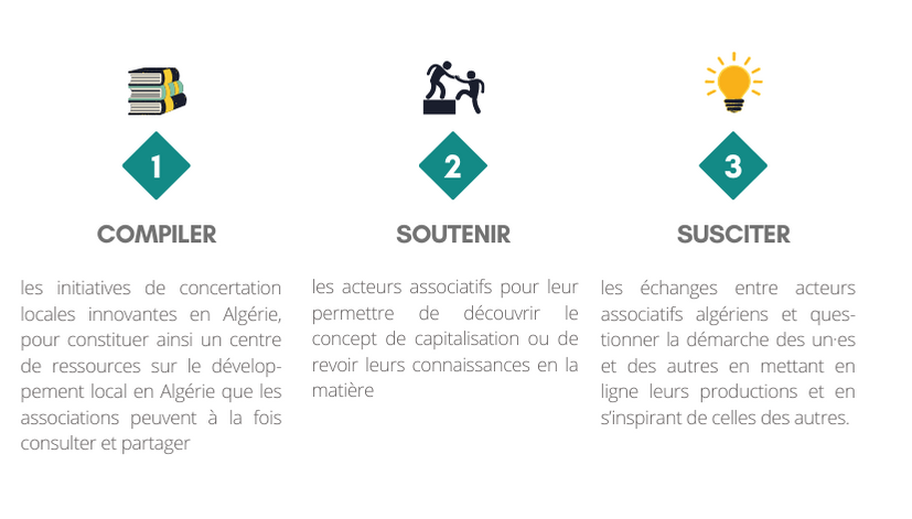 La plateforme SAARA est un outil gratuit et accessible, permettant le regroupement et la diffusion de supports pédagogiques variés destinés à nourrir les dynamiques de concertation existantes entre les acteurs associatifs algériens et d’en créer de nouvelles.
